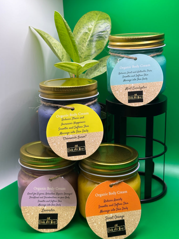 The Shea All Over Therapeutic Body Cream Collection includes quality organic essential oils for different therapeutic remedies and can assist with eczema, psoriasis, joint pain and other skin conditions along with mental health and simple relaxation. Take your time, browse the collection to see which therapeutic body cream you need at this time.